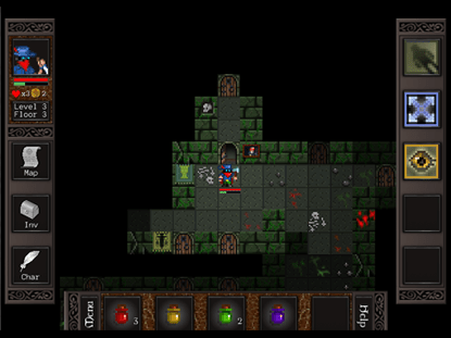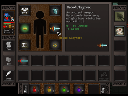 Auf eurem Weg, den ihr altbekannt und einfach per WASD und/oder Maussteuerung vorgebt, werdet ihr vor allem mit einem konfrontiert: Jeder Menge Action. Das Spiel fühlt sich sehr schnell an, obwohl es in Rogueliketradition natürlich prinzipiell rundenbasiert ist, d.h. die Gegner bewegen sich nur dann weiter, wenn ihr es auch tut. Die gefühlt hohe Geschwindigkeit kommt jedoch dadurch zustande, dass im Gameplay jegliche Elemente, die euch ausbremsen könnten, auf ziemlich clevere Art und Weise automatisch aufgelöst werden. So entfällt z.B. das aus anderen Genrevertretern hinlänglich bekannte Inventarsortieren fast völlig. Sammelt ihr einen Gegenstand ein, der schlechter als euer aktuell ausgerüsteter des selben Typs ist, wird ersterer automatisch in Gold umgewandelt (bislang existiert dieses nur zur Berechnung des Scores; über fahrende Händler, auf die man unterwegs trifft, wird seitens des Entwicklers nachgedacht). Findet ihr andererseits einen besseren, wird eure veraltete Ausrüstung ihrerseits zu Gold gemacht. Nur falls beide Gegenstände ihre Pros und Contras haben, wird der neuere überhaupt zwischenzeitlich ins Inventar abgelegt, sodass ihr selbst vergleichen und entscheiden könnt. Sinnvoll!
