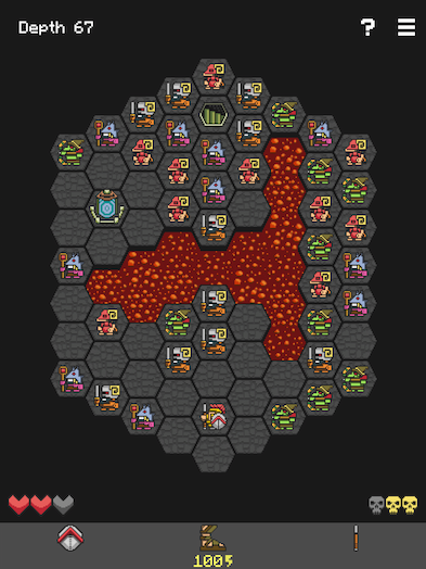 Schon in den ersten Minuten wird dabei deutlich, worum es spielerisch geht – nämlich ums “Schubsen”. Auro prügelt nicht auf Monster ein, um diesen Schaden zuzufügen und sie so zu besiegen, sondern er stößt sie lediglich ein Hexfeld von sich weg. Eliminieren lassen sie sich somit zunächst nur durch einen beherzten Rempler vom Rand des Spielfeldes in das die überfluteten Kellergewölbe des Königreichs umgebende Wasser. Die Levels werden zufällig generiert, allerdings in klar abgesteckten Rahmen, sodass keine unfair schweren oder zu leichten Ausreißer entstehen. Beispielsweise werden die Monster zwar randomisiert verteilt, jedoch stets – je nach Schwierigkeitsgrad und Level – aus einem explizit festgelegten Pool ausgewählt. In Kombination mit dem variablen Layout aus Säulen, Löchern, Ecken und – für das Hinunterschubsen natürlich unerlässlichen – Levelrändern ist dennoch für die langfristige Vielfalt der Herausforderungen gesorgt, ohne dass der Glücksfaktor jemals die Oberhand gewinnt.