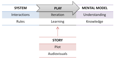 • Understanding: Spieler überführen ihr Wissen im Kontext der Lehren, die sie aus ihrem Erleben der Gameplay-Dynamiken ziehen, auf eine höhere Ebene. Sie verstehen immer komplexere systemische Zusammenhänge.