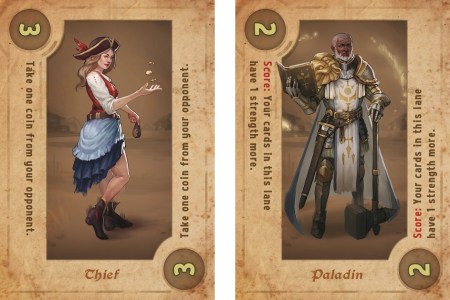 Gewertet wird eine der drei Lanes, sobald ein Spieler mindestens vier Söldner versammelt hat. Wer zwei Lanes für sich entscheidet, gewinnt. Mehr müssen die Spieler tatsächlich nicht wissen, um mit dem Wettbieten loslegen zu können. Eine komplette Partie ist für erfahrene Spieler in 20 Minuten zu bewältigen.