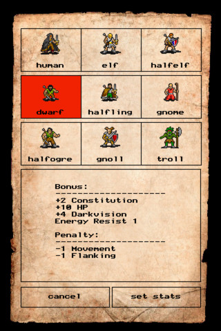 Zunächst ist strategisches Kalkül gefragt: Es gilt, die bestmögliche Kombination dreier Charaktere für das Abenteuer auszuwählen. Ob Mensch, Elf, Zwerg, Oger oder Mischform, jede Rasse hat eigene Stärken und natürlich auch Schwächen. Hat man sich entschieden, darf durch ein paar Parameter wie der Häufigkeit des Auftretens von Pilzen, Früchten, Items und Gegnern noch die Weltengeneration – und damit der Schwierigkeitsgrad – beeinflusst werden.